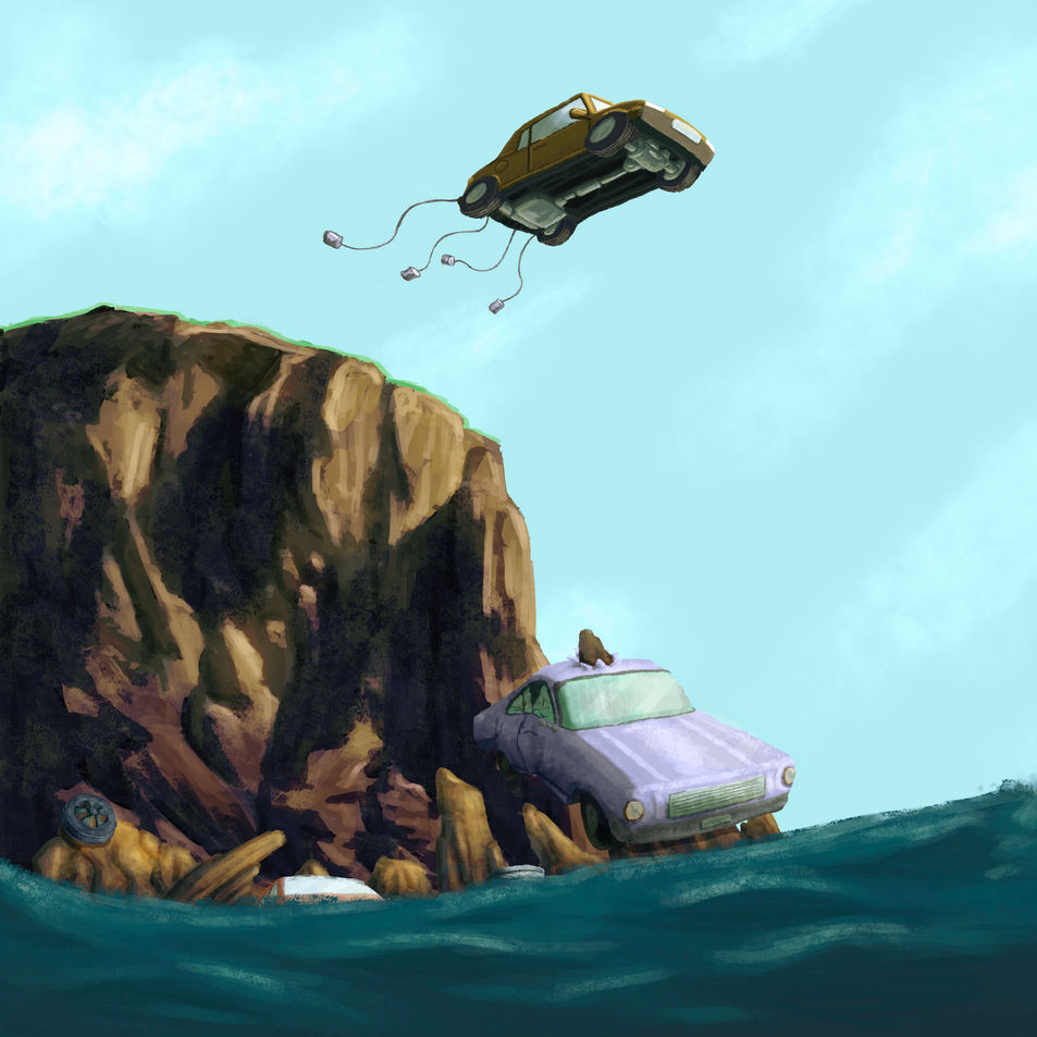 Why is it here? Where is it going? The only riders seem to be the underwater wildlife that made their way on.